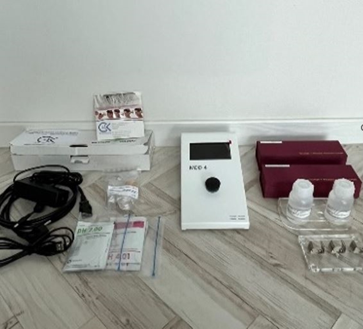 ÇǺΠ¼öºÐ ÃøÁ¤À» À§ÇÑ CM825 Corneometer ÇÁ·Îºê°¡ ÀåÂøµÈ  MDD4 ´ÙÁß µð½ºÇ÷¹ÀÌ ÀåÄ¡ÀÔ´Ï´Ù.