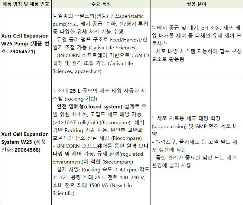 . Maker : Cytiva   . Model : Xuri Cell Expansion W25 Pump + System  . ƯÀÌ»çÇ× : Unicorn ÇÁ·Î±×·¥ »ç¿ëÇϸç ÀÛµ¿½Ã¿¡ co2,o2, n2 °¡½ºÅë ¹× Å°Æ®                 (cytiva ¾à 200¸¸¿ø ÆÇ¸Å) »ç¿ëÇØ¾ßÇÕ´Ï´Ù.  . ±¸ÀÔ°¡ : 9500¸¸¿ø (21³â 6¿ù)