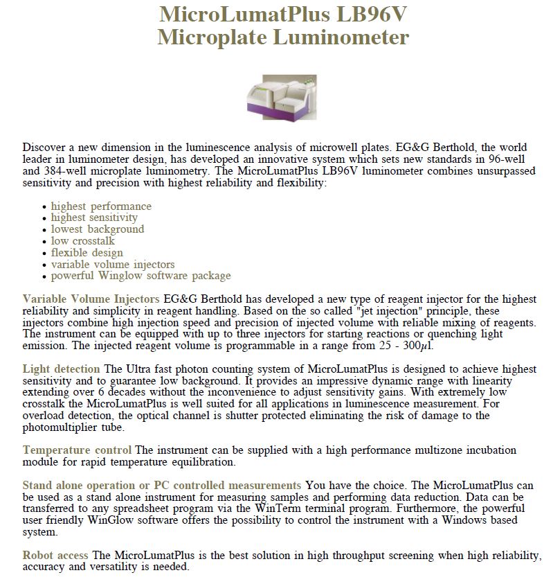 | ¹ÙÀÌ¿À Àåºñ Àü¹®Á¡ ÄÁºñÁ¯¿¡¼ Á¦°øÇÏ´Â ¸¶ÀÌÅ©·ÎÇ÷¹ÀÌÅÍ ¸®´õ  . Berthold Technologies MicroLumat Plus LB96V
