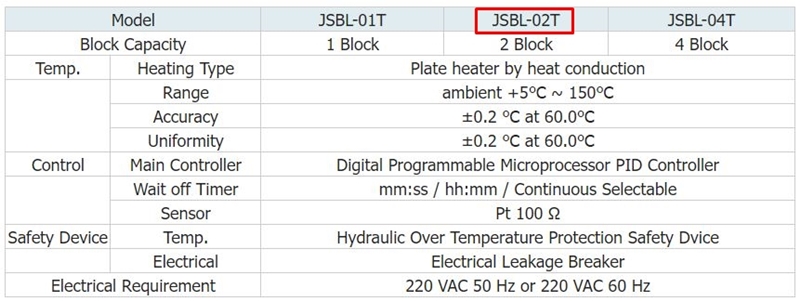 | ¹ÙÀÌ¿À Àåºñ Àü¹®Á¡ ÄÁºñÁ¯¿¡¼ Á¦°øÇÏ´Â È÷ÆÃ ºí·°    . Á¦Á¶»ç : Á¦ÀÌ¿¡½º¸®¼Ä¡ (JSR)  . Model : JSBL-02T  . Temp. range : Ambient +5¡É ~ 150¡É  . Controller : Digital PID Controller  . 2 Block