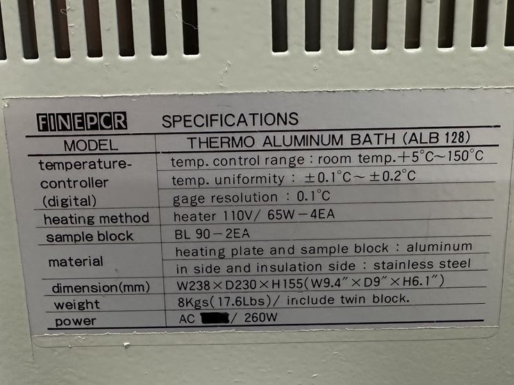 . Á¦Á¶»ç : FINEPCR  . Model : ALB128   . Temp. range : Ambient +5¡É ~ 150¡É  . 2 Block