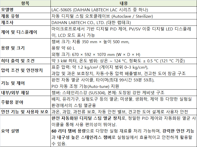 . Maker : LABTECH   . Model : LAC-5060S  . ¿ë·® : 60 ¸®ÅÍ