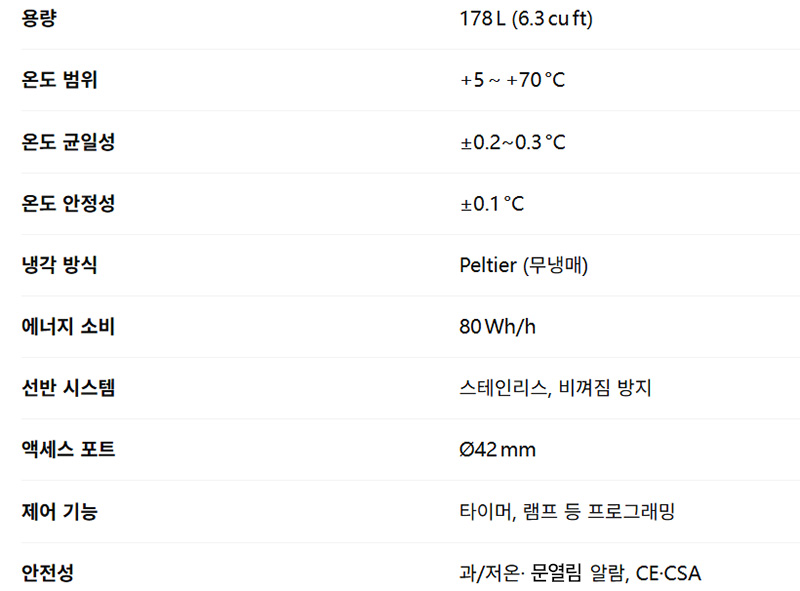 Peltier ³Ã°¢/°¡¿ ¹æ½Ä+5~+70 ¡ÆCÀÇ ¿Âµµ ¹üÀ§¸¦ Peltier ¸ðµâ·Î Á¤¹Ð Á¦¾îÇϸç, ³Ã¸Å »ç¿ë ¾øÀÌ È¿À²ÀûÀ¸·Î ¿îÀü °¡´É