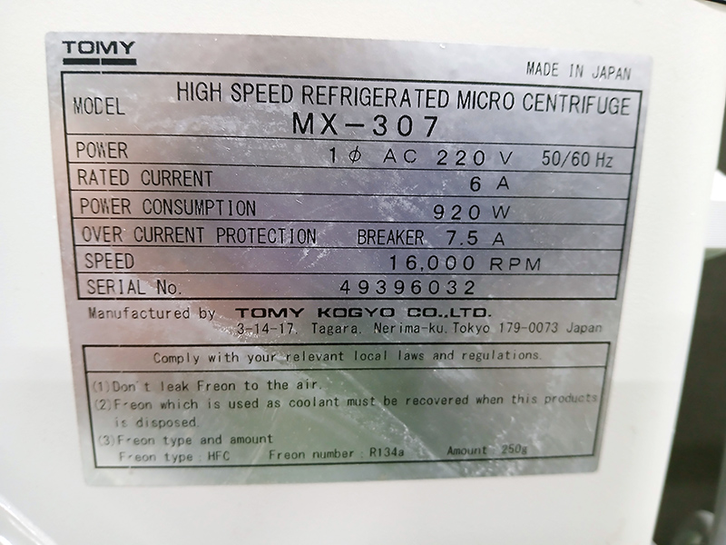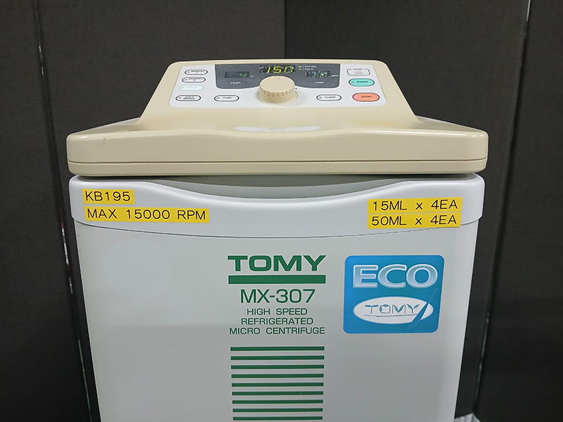 . Maker : TOMY KOGYO  . Model : MX-307  . Angle rotor : Max 15,000 rpm  . Tube : 50mL X 4 ea, 15mL X 4 ea