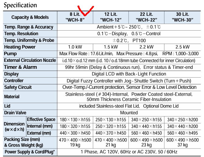 . Maker : DAIHAN   . Model : WCH-8  . ¿ë·® : 8 ¸®ÅÍ  . ¿Âµµ : ÃÖ´ë 250µµ / ³Ãµ¿±â ¾øÀ½  . ±¸ÀÔ°¡ : 150 ¸¸¿ø