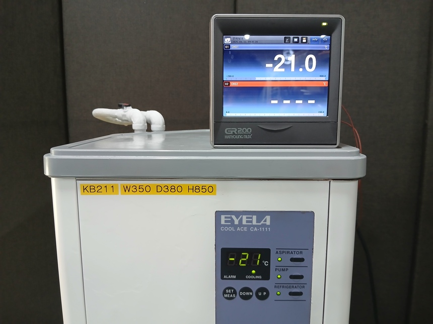 | Ç× ¸ñ | »ó ¼¼ ³» ¿ë |  | Á¦Á¶»ç | Eyela (Tokyo Rikakikai Co., Ltd.) |  | ¸ðµ¨¸í | Cool Ace CA-1111 |  | Á¦Ç° Á¾·ù | ¼øÈ¯½Ä ³Ã°¢¼ö ÀåÄ¡ (Recirculating Chiller / Low Temperature Bath) |  | ¿Âµµ ¹üÀ§ | ¾à -20 ¡É ~ ½Ç¿Â (»çÁø»ó -21 ¡É È®ÀÎ °¡´É) |  | ¿Âµµ Á¦¾î | µðÁöÅÐ Á¦¾î ¹æ½Ä (Á¤¹Ð Á¦¾î °¡´É) |  | ³Ã°¢¼öÁ¶ ÀçÁú | ½ºÅ×Àθ®½º (³»½Ä¼º, ¼¼Ã´ ¿ëÀÌ) |  | ÆßÇÁ ±â´É | ³»Àå ÆßÇÁ ÀåÂø – ¿ÜºÎ Àåºñ¿Í ¿¬°áÇØ ³Ã°¢¼ö ¼øÈ¯ °ø±Þ |  | ÁÖ¿ä Æ¯Â¡ | ¾ÈÁ¤ÀûÀ̰í Á¤¹ÐÇÑ Àú¿Â Á¦¾î |  | ³»Àå ÆßÇÁ¸¦ ÅëÇÑ ¿ÜºÎ ÀåÄ¡ ³Ã°¢ Áö¿ø |  | ½ºÅ×Àθ®½º ¼öÁ¶·Î ³»±¸¼º°ú À§»ý¼º È®º¸ |  | µðÁöÅÐ µð½ºÇ÷¹ÀÌ·Î ¿Âµµ ¸ð´ÏÅ͸µ ¿ëÀÌ |  | ¹ÙÄû ÀåÂøÀ¸·Î À̵¿ Æí¸® |  | Àû¿ë ºÐ¾ß | ȸÀü Áõ¹ß±â, Áõ·ù±â, Å©·Î¸¶Åä±×·¡ÇÇ ½Ã½ºÅÛ, ºÐ±¤±¤µµ°è, ¹ÝÀÀ±â, |  | »ý¸í°úÇÐ ¹× ÈÇÐ ½ÇÇè ÀåÄ¡ ³Ã°¢ ¹× ½Ã·á Àú¿Â À¯Áö |