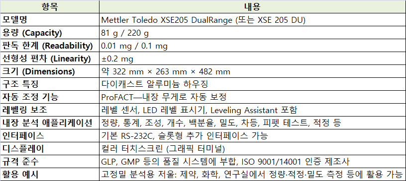 . Maker : Mettler Toledo  . Model : XSE205 DualRange  . ±¸ÀÔ°¡ : 1200 ¸¸¿ø