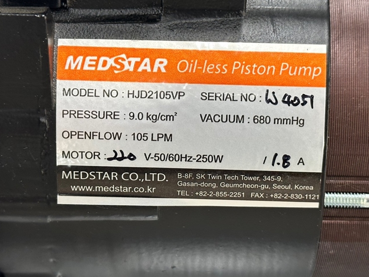 . Maker : MEDSTAR   . Model : HJD2105VP  . 80 Torr  . Àü¾Ð : 220V