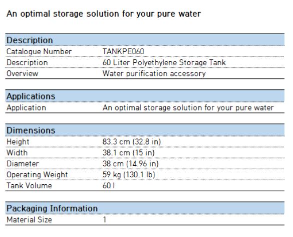 . Maker :  MILLIPORE  . Model : TANKPE060 / 60 Liter Polyethylene Storage Tank  . ¿ë·® : 60 L  . »óÅ : Áß°íÁ¦Ç°