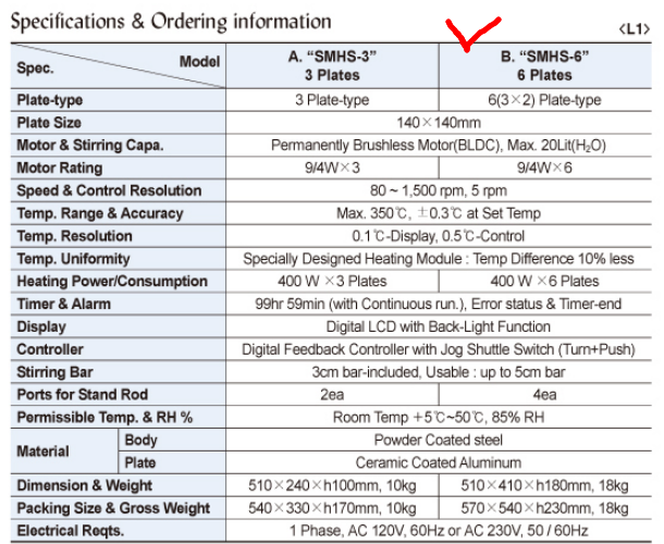 . Á¦Á¶»ç : ´ëÇÑ °úÇÐ . Model : SMHS-6 . Ç÷¹ÀÌÆ® Å©±â : 140 X 140 mm . ¿Âµµ ¹üÀ§ : Max. 350¡É . ¼Óµµ ¹üÀ§ : Max. 1,500 rpm . ³»¿¼º, ³»ÈÇмº ¹× ³»»ê¼º Á¦ÇÑ . ¾×ü°¡ ¾ÈÀ¸·Î µé¾î°¥ ¼ö ¾øÀ½ . ÆÄ¿ì´õ ÄÚÆÃ ½ºÆ¿ ¹Ùµð . û¼ÒÇϱ⠿ëÀÌ