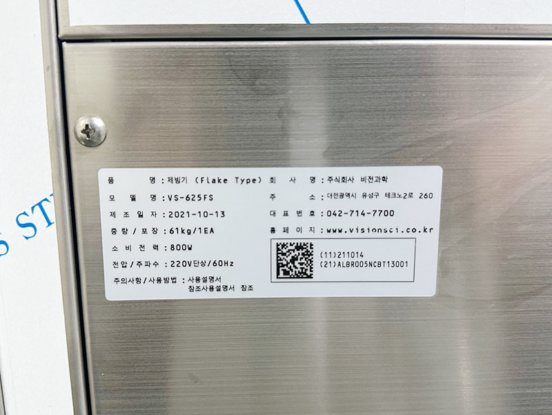 . Á¦Á¶»ç : ºñÁ¯°úÇÐ (±¹»ê)  . ¸ðµ¨¹øÈ£ : VS-625FS  . Flake Type  . ÀÏÀÏ Á¦ºù·® : 80 Kg  . Á¦ºù¹æ½Ä : ȸÀü½Ä ÅÍºó¹æ½Ä  . ¼öÀ§ / ¾óÀ½ ·¹º§ ¼¾¼ ÀåÂø  . Size : w600 X d560 X h690