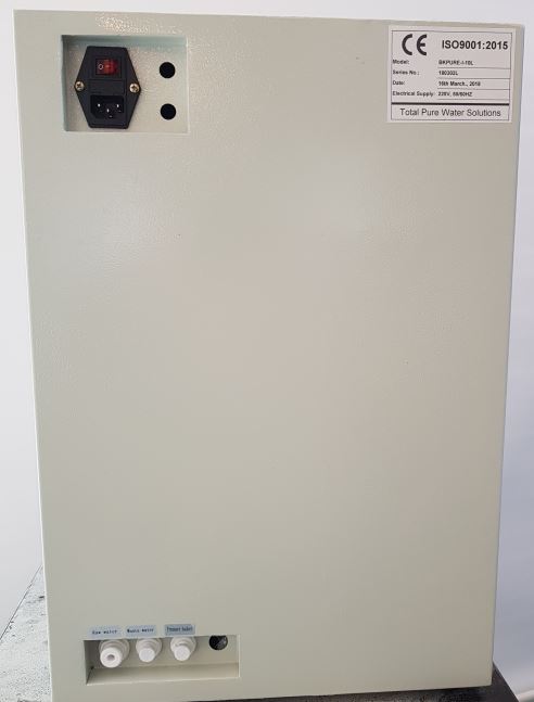 . ¸ðµ¨ : BKPURE-I-10L(\1,870,000)/ 20L (\2,090,000¿ø) . »óÅ : ½Åǰ . °ø±Þ¼ö ¾Ð·Â : 0.15MPa ~ 0.4Mpa . »ç¿ë ¿Âµµ : 5 ~ 35 ¡É . PH ¹üÀ§ : 6~9 . RO¼ö Conductivity : <2-10us/cm ( ½Ç½Ã°£ ¸ð´ÏÅ͸µ) . RO¼ö ¿ë·® : 10Liter/hour(BKPURE-I-10L) , 20Liter/hour(BKPURE-I-20L) . ±âº»Á¦°ø : 10Liter ¾ÐÃàÅÊÅ© (2Liter/min), Pre treatment column , RO membrane filter . Å©±â/ ¹«°Ô : 380 x 510 x 550 [mm], 30Kg.