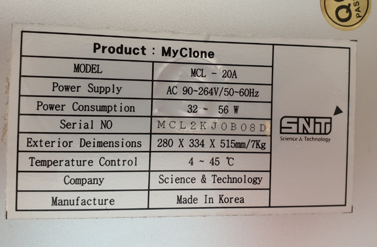 . ¸ðµ¨ : MyClone MCL-20A . ¿Âµµ : 4¡É ~ 45¡É . »óÅ : Áß°íǰ