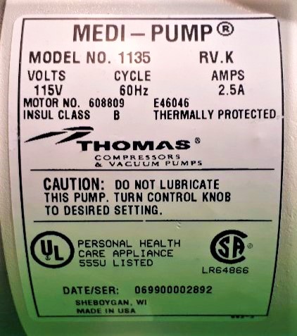 . Condition : used . THOMAS 1135 MEDI-PUMP