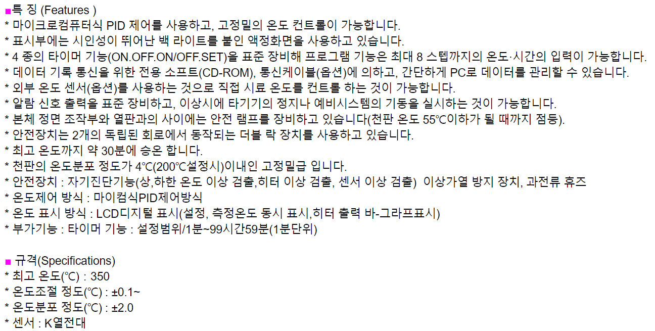 . Á¦Á¶»ç : AS ONE (Japan)  . ¸ðµ¨ : ND-3H  . Max Temp 350¡É  . Ç÷¹ÀÌÆ® Å©±â : w 400 X d 300 mm ¾Ë·ç¹Ì´½+¼¼¶ó¹Í ÄÚÆÃ  . ¿ÜºÎ Å©±â : w 470 x d 410 x h 70 mm   . Àü¿ø 110 V