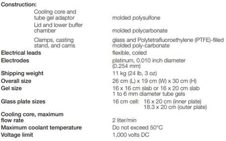 . Maker : BIO-RAD . Model : Protean ii xi cell . Overall Size : L260 x W190 x H300 mm . Gel Size : 160 x 160 mm slab or 160 x 200 mm slab . Used