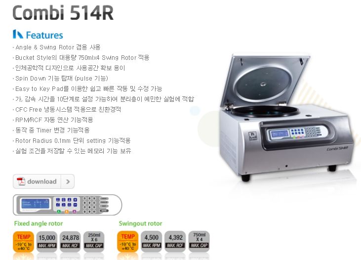 . ¸ðµ¨ : ³ÃÀå ¿ø½ÉºÐ¸®±â Combi-514R . 15ml X 17, 4EA . Max 4,500 rpm . Temp : -10 ~ 40 degrees . Áß°íÁ¦Ç°