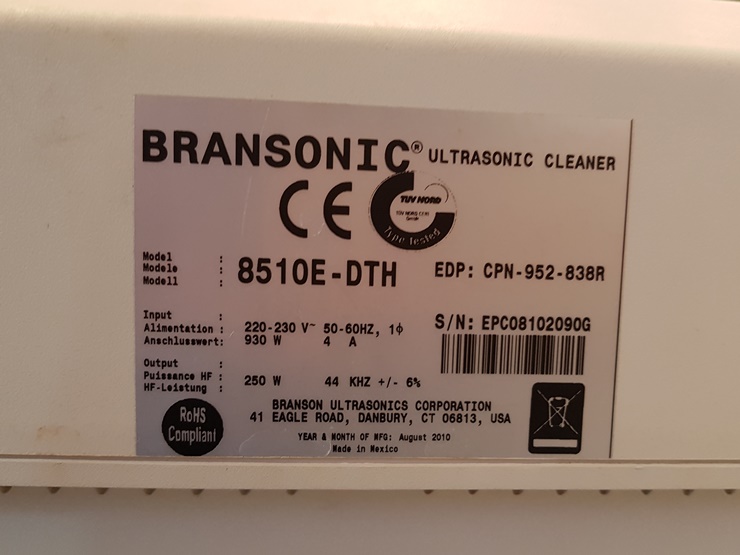 ¹ÙÀÌ¿À Àåºñ Àü¹®Á¡ ÄÁºñÁ¯¿¡¼ Á¦°øÇÏ´Â ÃÊÀ½ÆÄ ¼¼Ã´±â . Maker : BRANSONIC ULTRASONIC CLEANER . Model : 8510E-DTH (½ÅÇü) . ³»ºÎ¿ëÀû : 20 ¸®ÅÍ . Frequency : 50-60HZ . Àü¿ø : 220 Volt . Áß°íÁ¦Ç°