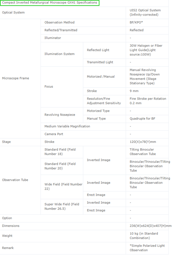 . ¸ðµ¨ : ¿Ã¸²Çª½º GX41 . ´ë¾È·»Áî : 10X . ´ë¹°·»Áî : 5X, 10X, 20X, 50X . ÃѹèÀ² : ÃÖ´ë 500¹è . 3 M Pixel Camera Á¦°ø . À̹ÌÁö ĸÃÄ ¹× Ä¡¼öÃøÁ¤ÀÌ °¡´ÉÇÑ À̹ÌÁö ºÐ¼® ¼ÒÇÁÅ׿þ¾î Á¦°ø . Áß°íÁ¦Ç°