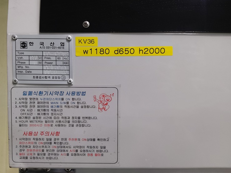 . Á¦Á¶»ç : Çѱ¹»ê¾÷ . Å©±â : w1180 x d650 x h2000 mm . Àü¿ø : 220V . »óÅ : Áß°íÁ¦Ç°