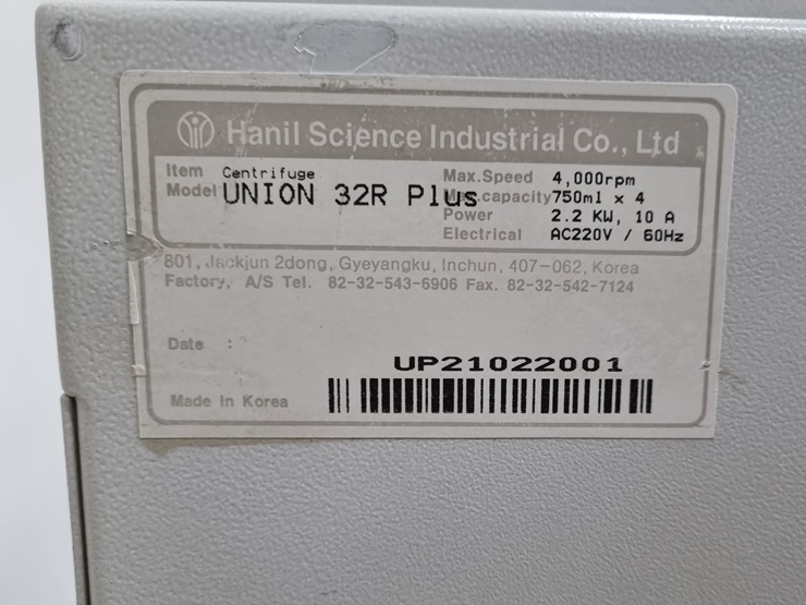 ¹ÙÀÌ¿À Àåºñ Àü¹®Á¡ ÄÁºñÁ¯¿¡¼ Á¦°øÇÏ´Â ¿ø½ÉºÐ¸®±â . Á¦Á¶»ç : ÇÑÀϰúÇÐ . ¸ðµ¨ : Union 32R Plus . Speed : 4,000rpm . Swing Bucket Rotor . 15mL, 50 mL, 100mL, 250mL, 500mL Æ©ºêÀåÂø °¡´ÉÇÏ¸ç Æ©ºê·¢ 4°³ ±âº» Á¦°ø . ¿Ü°ü Ä¡¼ö : W640 x D605 x H440 mm . Áß°íÁ¦Ç°