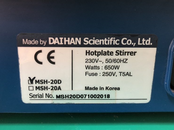 . Á¦Á¶»ç : ´ëÇÑ °úÇÐ  . Model : MSH-20D  . Ç÷¹ÀÌÆ® Å©±â : 180 X 180 mm