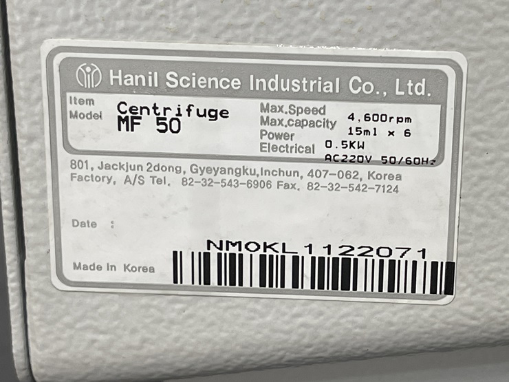 . Maker : ÇÑÀϰúÇÐ  . Model : MF50  . Max. RPM : 4,600 rpm  . Max capacity : 15ml X 6EA    . ¸®ÆÛÁ¦Ç° (Áß°íǰ Á¡°Ë ¹× ¼ö¸® ¿Ï·á )  . »çÈİü¸® : 2°³¿ù ¹«»ó ¼ö¸® / °æ°ú ½Ã À¯»ó ¼ö¸® (ºÎǰ°¡ À§ÁÖÀÇ ÃÖ¼Ò ºñ¿ë û±¸)