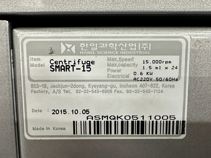 . Model : Smart 15 . 1.5ml X 24EA . Max. speed 15,000rpm . Àü¿ø : 220V . À̹ÌÁö¿¡ º¸ÀÌÁö ¾Ê´Â ·ÎÅÍÄ¿¹ö´Â ½ÅǰÀ¸·Î Á¦°øÇÔ