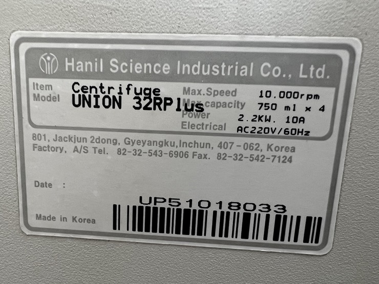 ¹ÙÀÌ¿À Àåºñ Àü¹®Á¡ ÄÁºñÁ¯¿¡¼ Á¦°øÇÏ´Â ¿ø½ÉºÐ¸®±â . Maker : Hanil . Model : Union 32R . Speed : 4,000rpm . Rotor : Swing bucket Type . Tube rack : 15ml, 50ml, 500ml µî 4°³ ±âº»Á¦°ø (±¸¸Å½Ã ¿äûÇϼ¼¿ä) . ¿Ü°ü Ä¡¼ö : w640 x d605 x h440 mm . Áß°íÁ¦Ç°