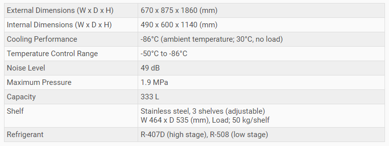 ÀÌ ³Ãµ¿°í´Â -86CÀÇ ³·Àº ¿Âµµ¿¡ µµ´ÞÇÒ ¼ö ÀÖÀ¸¸ç ³»ºÎ ¿ë·®Àº 333LÀÔ´Ï´Ù.