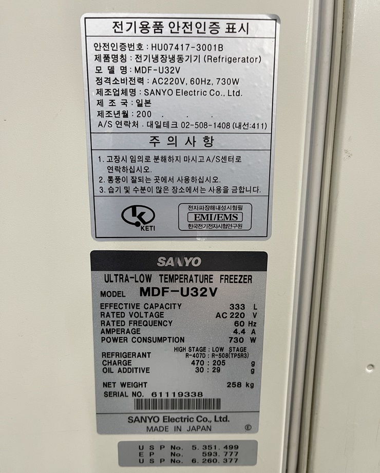 Sanyo MDF-U32V Ultra-Low Temperature Freezer ÃÊÀú¿Â ³Ãµ¿°í, 333¸®ÅÍ (MH10)