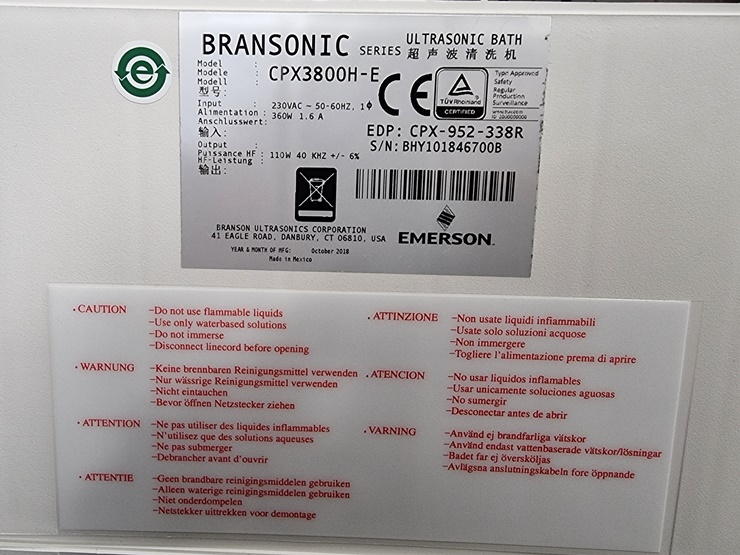 . Maker : BRANSONIC ULTRASONIC CLEANER  . Model : CPX3800H-E  . ³»ºÎ¿ëÀû : 5.7 L  . W300 X D150 X H150 mm  . Power : 220V