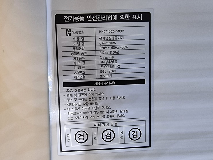 . Maker : À¯´ÏÅ©   . Model : CW-570RS ¼öÁ÷Çü ³ÃÀå ¼îÄÉÀ̽º   . ¿ë·® : 560 L  . ¿Âµµ¹üÀ§ : 0 ~ 10 ¡É  . Áß·® : 115 kg  . ¿ÜºÎÅ©±â : W700 X D660 X H1830 mm
