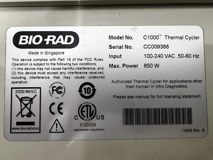 . Maker : Bio-Rad   . Model : C1000 Thermal Cycler
