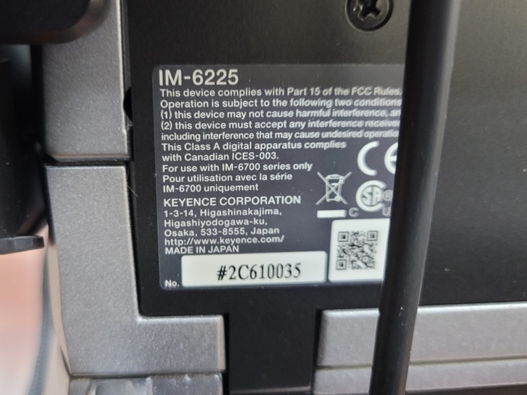 . Maker : KEYENCE . Model : IM-6225 . À̹ÌÁö ÇȾ÷ ÀåÄ¡ : 1" 6.6 ¸Þ°¡Çȼ¿ ¸ð³ëÅ©·Ò CMOS . µð½ºÇ÷¹ÀÌ : 10.4" LCD ¸ð´ÏÅÍ . ¼ö±¤ ·»Áî : ÀÌÁß ÅÚ·¹¼¾Æ®¸¯ ·»Áî . ÃøÁ¤ ¹üÀ§ : 0-2.36" . ÃøÁ¤ À§Ä¡ Á¤È®µµ(XY) : 0.027" . X ¹üÀ§ : 3.93" . Z ¹üÀ§ : 1.18"