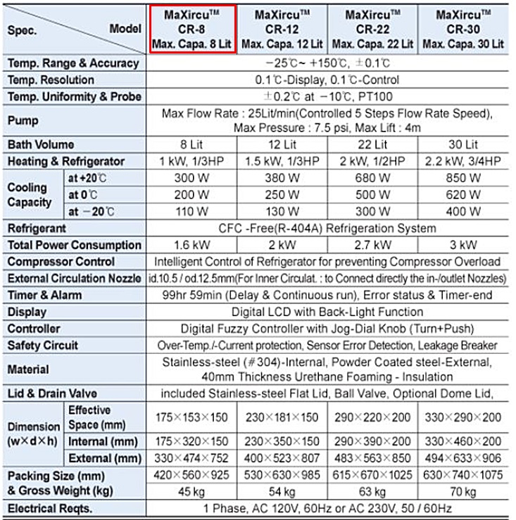 . Maker : DAIHAN . Model : MaXircu CR-8 . ¿Âµµ : -25¡É~ +150¡É . ¿ë·® : 8 ¸®ÅÍ