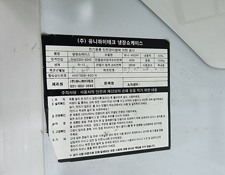 . Maker : À¯´ÏÇÏÀÌÅ×Å©  . Model : À¯´Ï-465RF  . ³»¿ëÀû : 425 L