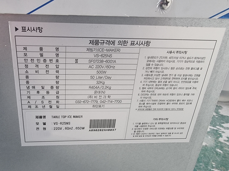 . Maker : ºñÁ¯°úÇÐ . Model : VS-625NS . Snow type . Power : AC220V . ¼³Ä¡ºñ ¹× ¿î¼Ûºñ º°µµ