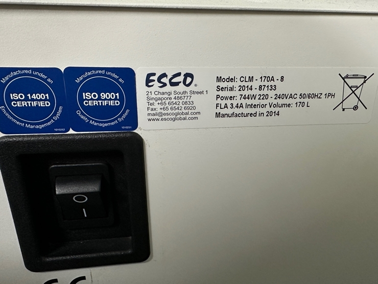 . Maker : Esco  . Model : CLM-170A-8  . ¿ë·® : 170 L     . ¸®ÆÛÁ¦Ç° (Áß°íǰ Á¡°Ë ¹× ¼ö¸® ¿Ï·á)  . »çÈİü¸® : 2°³¿ù ¹«»ó ¼ö¸® / °æ°ú ½Ã À¯»ó ¼ö¸® (ºÎǰ°¡ À§ÁÖÀÇ ÃÖ¼Ò ºñ¿ë û±¸)