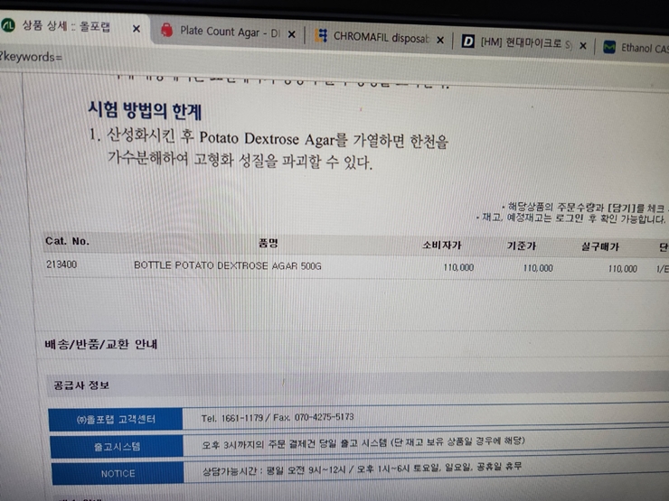 ¹ÙÀÌ¿À Àåºñ Àü¹®Á¡ ÄÁºñÁ¯¿¡¼ Á¦°øÇÏ´Â 213400 BOTTLE Potato Dextrose Agar 500g