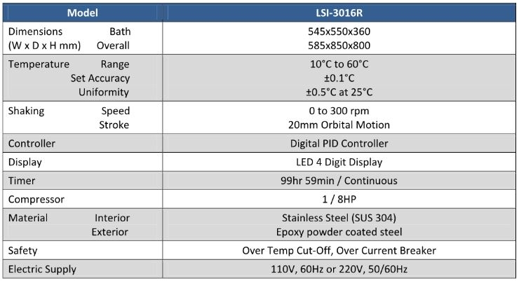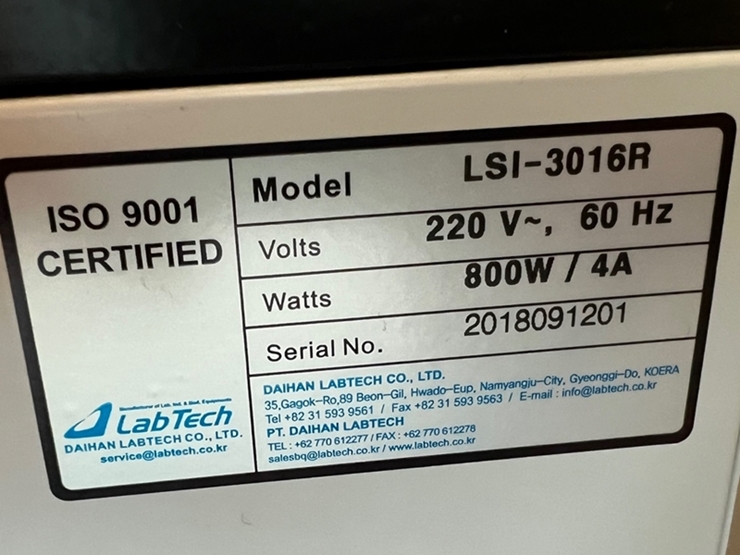 . Maker : Labtech    . Model : LSI-3016R  . ³»ºÎÅ©±â : w 545 X d 550 X h 360 mm  . ¿ÜºÎÅ©±â : w 585 X d 850 X h 800 mm  . Speed range : 0 - 300 rpm  . Temp. range : 10¡É ~ 60¡É