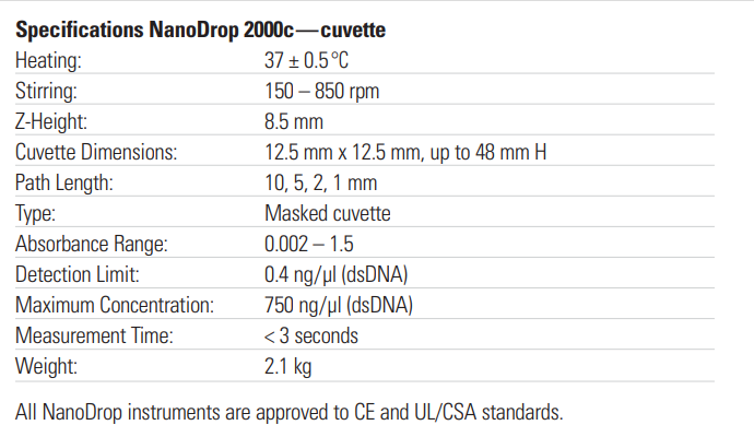 . Maker : Thermo Scientific . Model : NanoDrop 2000c