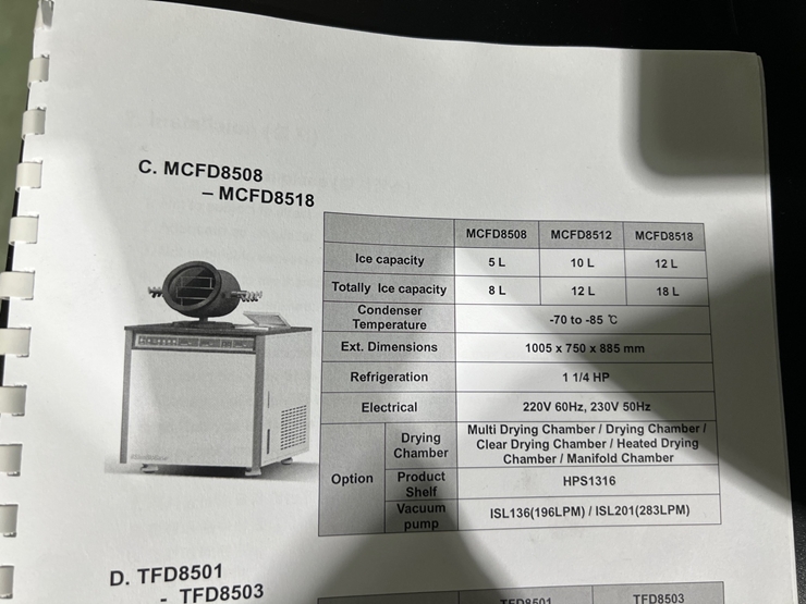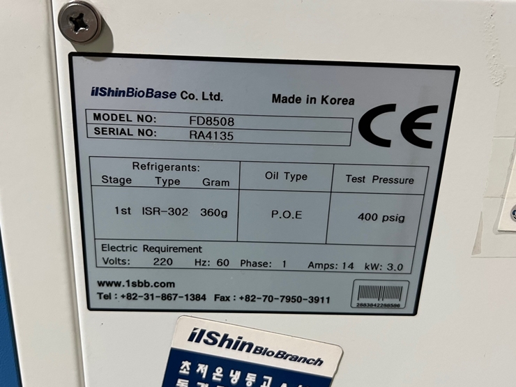 . Maker : ilShin Biobase    . Model : FD 8508   . Capacity : 8 L  . ¿Âµµ ¹üÀ§ : -70¡É ~ -85¡É
