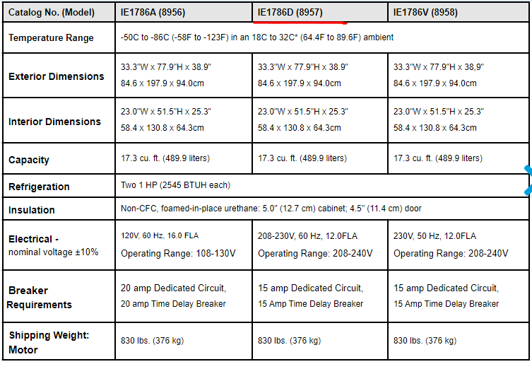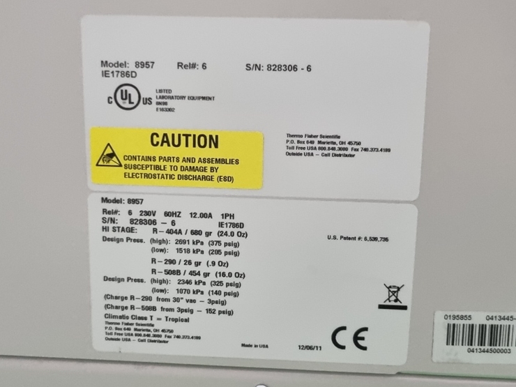 . Maker : Thermo . Model : Isotemp 8957 . ¿Âµµ¹üÀ§ : -86¡É . ¿ë·® : 490 ¸®ÅÍ . ¿ÜºÎÅ©±â : w 846 X d 940 X h 1980 mm . ÃÊÀú¿Â ³Ãµ¿°í ¹«»ó¼ö¸®±â°£Àº 12°³¿ù ÀÔ´Ï´Ù.