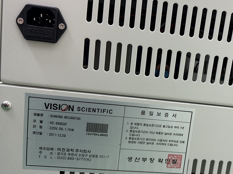 . Maker : Vision   . Model : VS-8480SF  . ³»ºÎÅ©±â : w 510 X d 530 X h 400 mm  . Speed range : 10 - 350 rpm  . Temp. range : 15¡É ~ 60¡É