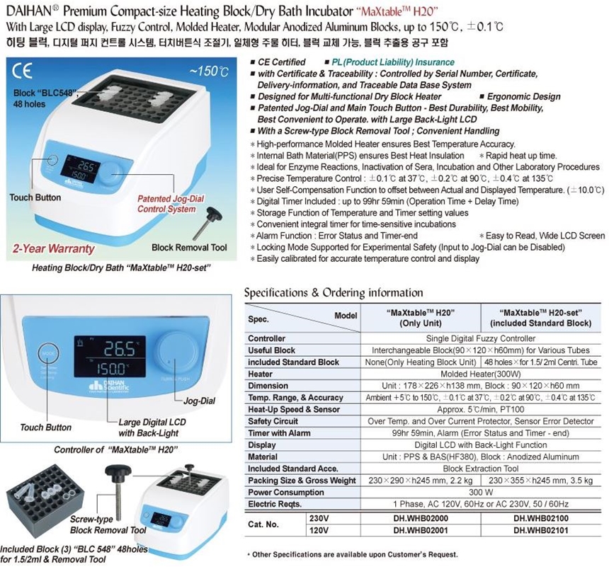 ¹ÙÀÌ¿À Àåºñ Àü¹®Á¡ ÄÁºñÁ¯¿¡¼ Á¦°øÇÏ´Â È÷ÆÃ ºí·° (µå¶óÀÌ ¹è½º)    . Á¦Á¶»ç : ´ëÇѰúÇÐ  . Model : MaXtable H20  . Temp. range : ambient +5¡É to 150¡É
