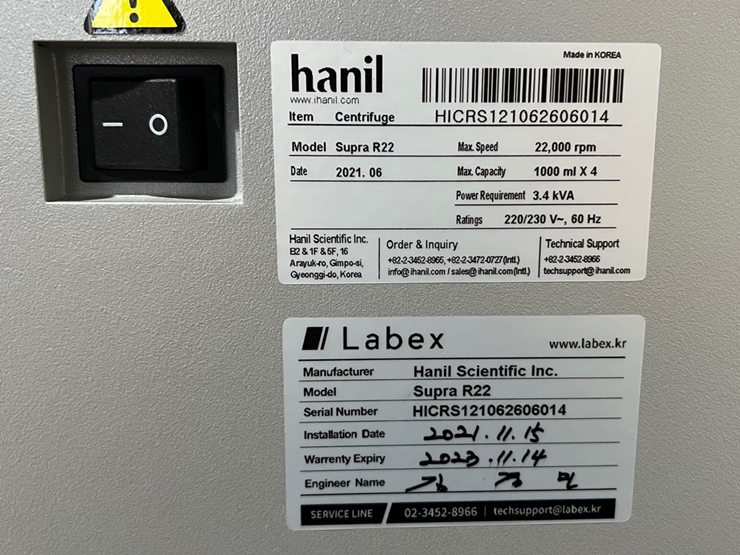 ÇÑÀÏ¿ø½ÉºÐ¸®±â Supra R22 °í¼Ó ³ÃÀå Centrifuge, 500mL X 6 (AB228)