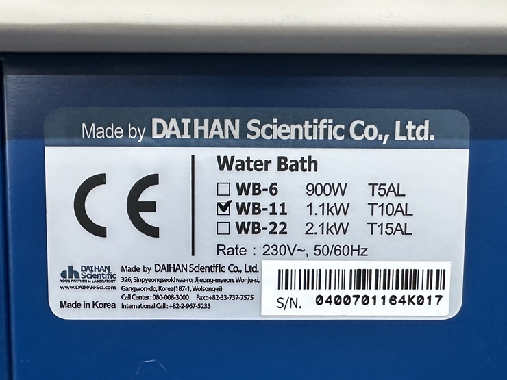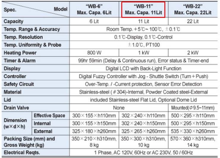 . Á¦Á¶»ç : DAIHAN . Model : WB-11 . Bath : w300 x d240 x h110 mm, 11L . Power : 220 V . ½ÅÁ¦Ç° : 63 ¸¸¿ø