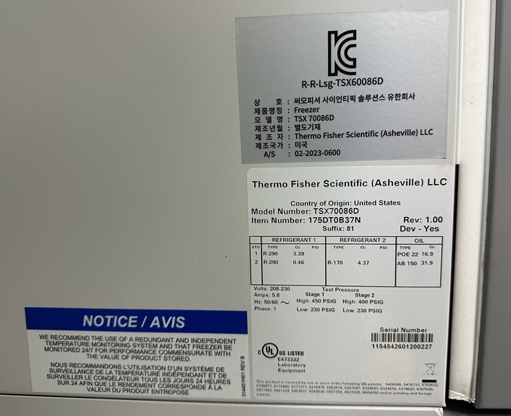 . Maker : Thermo . Model : Isotemp 8974 . ¿Âµµ¹üÀ§ : -50¡É ~ -86¡É . ¿ë·® : 949 ¸®ÅÍ . 2ÀÎÄ¡ Å©¶óÀÌ¿À¹Ú½º 700°³ ¼ö¿ë . ¿ÜºÎÅ©±â : w 1240 X d 1050 X h 1980 mm . 2020³â ±¸ÀÔ°¡ 1800 ¸¸¿ø . ÃÊÀú¿Â ³Ãµ¿°í ¹«»ó¼ö¸®±â°£Àº 12°³¿ù ÀÔ´Ï´Ù.