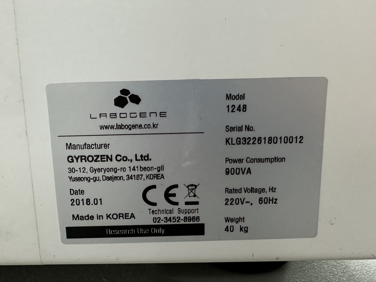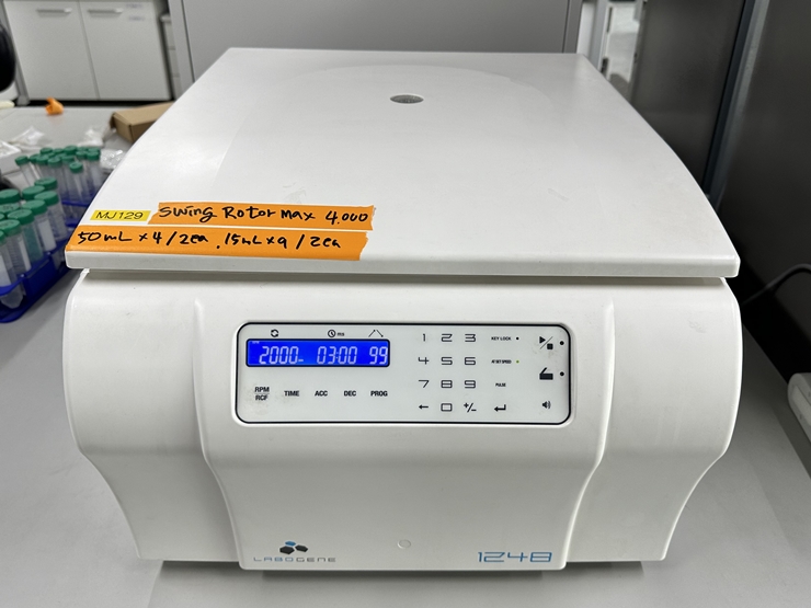 . Maker : ÀÚÀÌ·ÎÁ¨ . Model : LABOGENE 1248 . Max. 4,000rpm . 50ml X 4 X 2EA, 15ml X 9 X 2EA . ±¸ÀÔ°¡ : 770 ¸¸¿ø